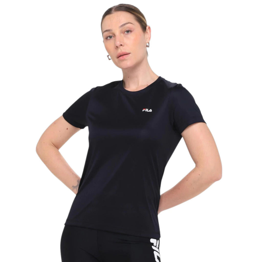 Seu corte feminino e elegante complementa o visual, enquanto o logo da Fila adiciona um toque de estilo esportivo e autêntico à peça.