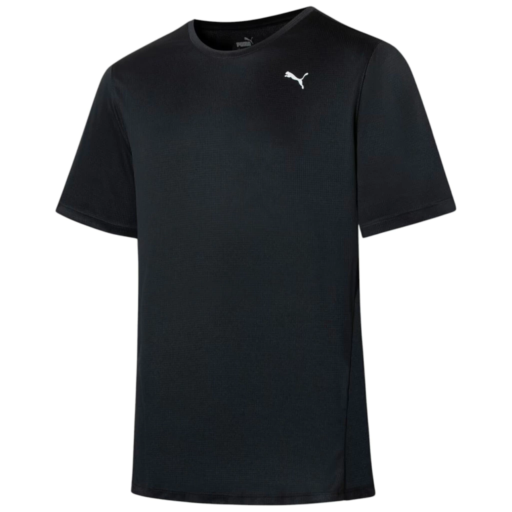 Camiseta masculina básica com costura lateral deslocada para frente para melhor vestibilidade. Tecido de malha texturizada em canaletas 100% Poliéster. Tecido com tecnologia Drycell: Tecnologia PUMA de alta performance com propriedades de absorção de umidade que mantém o corpo seco durante o treino. Logo PUMA do lado esquerdo do peito com tecnologia refletiva.