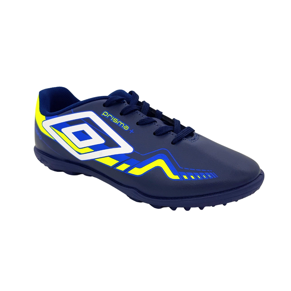 Decida campeonatos! A Chuteira Society Umbro Prisma + Infantil foi desenvolvida para vencer partidas de futebol com golaços ou defesas importantes. A peça tecnológica da marca esportiva ajuda a garotada a buscar o controle total da bola na hora do chute.