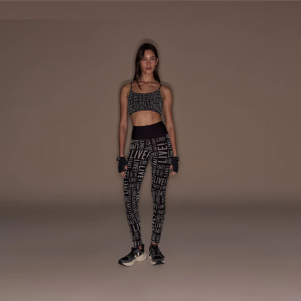 Possui estampa em Signature LIVE! refletivo, que traz mais segurança em ambientes com baixa luminosidade e/ou práticas noturnas, adiciona toque de exclusividade ao produto.