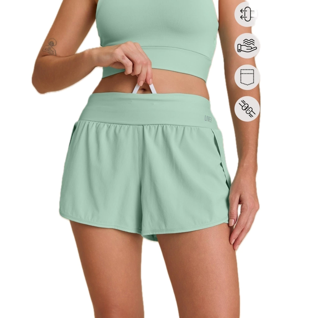 O Shorts apresenta design moderno com laterais transpassadas e barra arredondada, proporcionando um visual descomplicado e estiloso. O bolso no shorts interno oferece praticidade, enquanto o cós ajustável por elástico interno proporciona um ajuste confortável e personalizado. A estampa Assinatura LIVE! confere um toque exclusivo. Com tecnologia Quick Dry, mantém o corpo seco, e o Easy Care facilita os cuidados diários. O Bi-Stretch oferece elasticidade em todas as direções, garantindo conforto e liberdade de movimento.